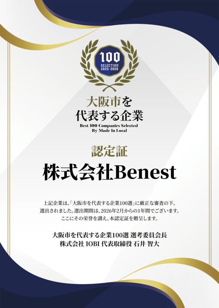 大阪市企業100選に選ばれました。